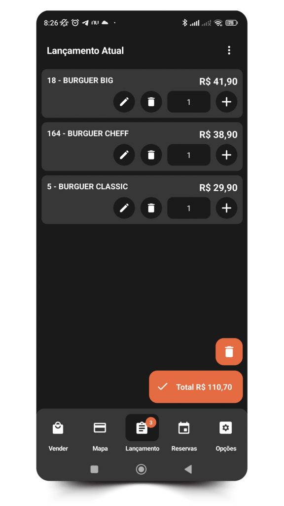 Lançamento de pedidos através do Celular, Tablet ou Smart POS